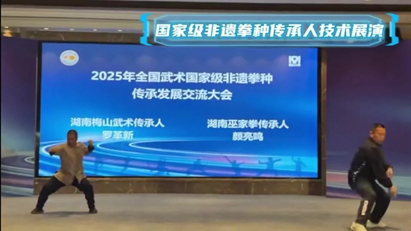 2025年12月27日至28日,2025年全国武术国家级非遗拳种传承发展交流大会在杭州市萧山区举行。大会由国家体育总局武术研究院、国家体育总局武术运动管理中心、中国武术协会联合主办,浙江省武术协会、杭州市萧山区文化和广电旅游体育局共同承办。在梅山武术界有较大影响力的传承人罗革新同志参会,当场表演了梅山武术经典套路,并做了重要发言,获得了热烈反响。