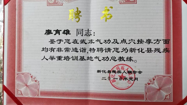 廖育雄,上世纪六十年代生于武术医学世家。1987年在北京出席首届全国武术研讨会,拜武当九宫门唯一传人王炳生、梅山武术掌门晏西征等名家为师学武当武功、峨眉天罡指穴法、形意拳、八卦掌、梅山武术,融汇所学创编梅山推拿养生按摩术。在多年的养生实践中,曾用手法治愈过多种疑难杂症,救人无数。得到全国各地患者和社会的普遍好评。主编过《梅山武学》等专著。所编写的养生按摩著作被有关单位作为教材。经常有文学、武术、医学养生等方面的论文在各大报刊发表。有《梅山文艺》《文化旅游》《娄底日报》《星星诗刊》《红网》等多家媒体报道过廖育雄的事迹。